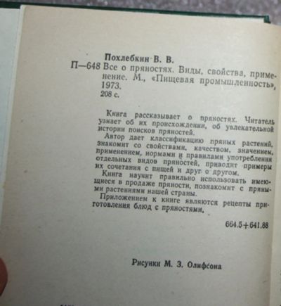 Похлебкин В.В. Всё о пряностях. Виды, свойства, применение. М. 1974 г. (К-Л) Твердый переплёт!